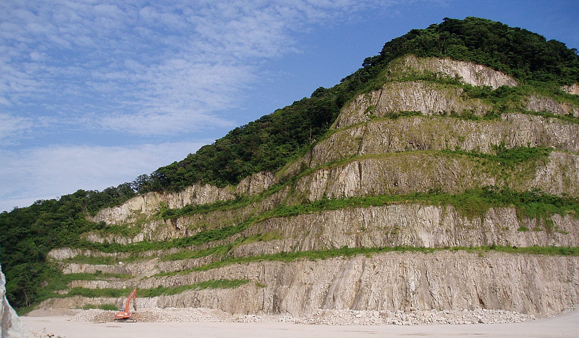 約20年前の山肌と、現在の山肌です。緑化が進み、ほぼ岩盤は見えなくなっています。